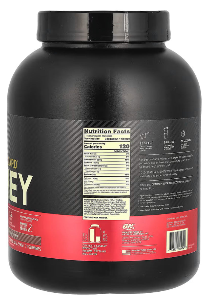 אבקת חלבון גולד סטאנדארד בטעם שוקולד כפול, 2.26 ק"ג